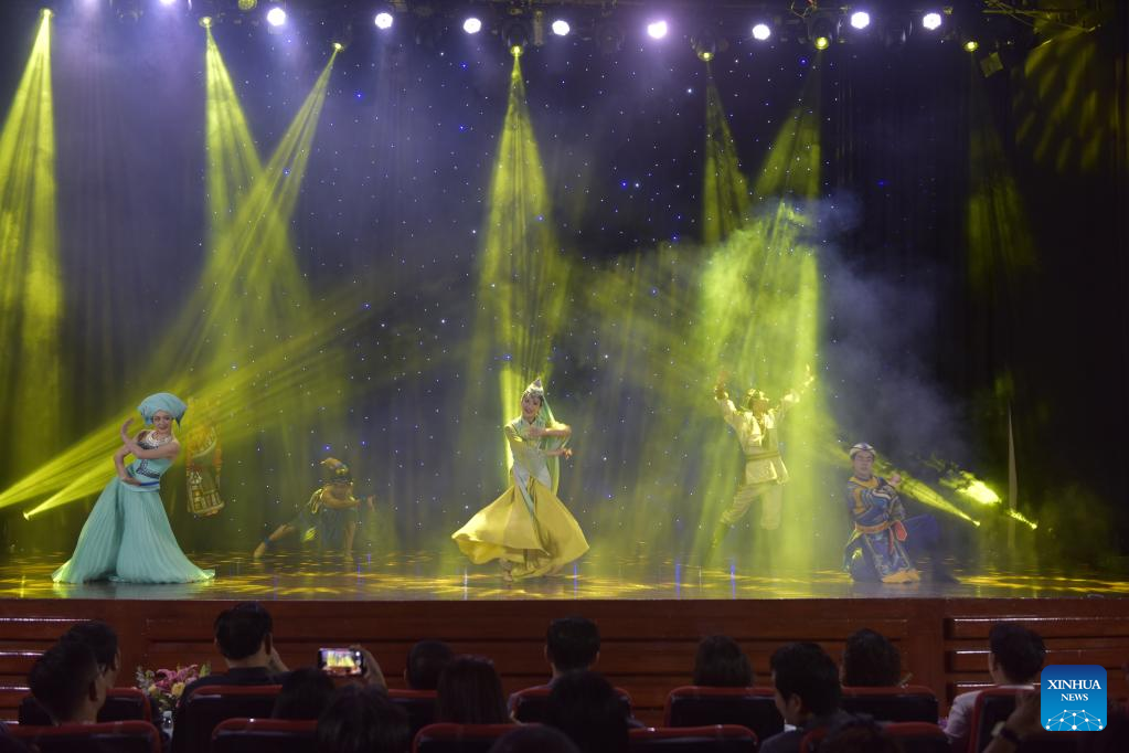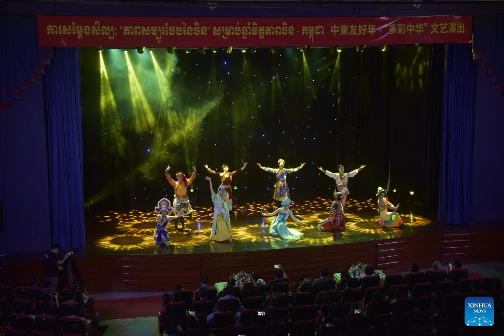 PHNOM PENH, May 28 (Xinhua) -- Cambodian and Chinese artists on Saturday jointly performed traditional dances, music, acrobatics and martial arts here to celebrate the 65th anniversary of diplomatic relations and the friendship year between the two countries.