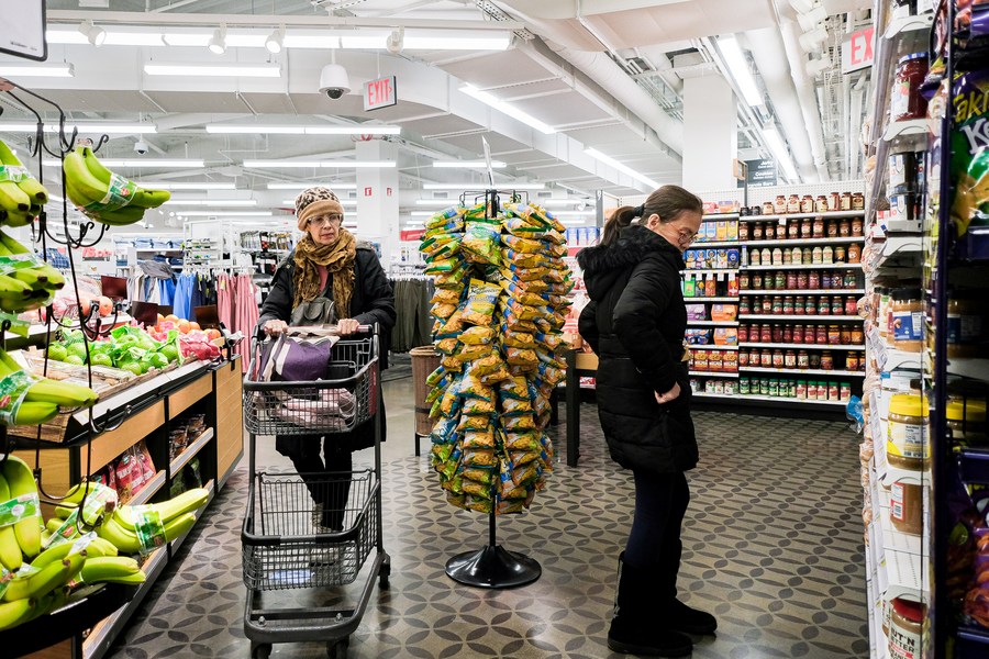 Customers shop at a store in Queens, New York, the United States, on Jan. 12, 2023. (Photo by Ziyu Julian Zhu/Xinhua)
