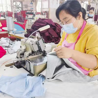 A female worker sews clothes at a clothing factory in Zhongshan city, south China's Guangdong Province. (People's Daily/Hong Qiuting)