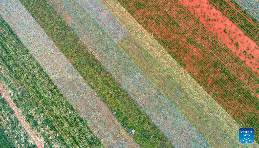 This aerial photo taken on May 26, 2023 shows the fields which are mainly planted with pineapples in Qujie Township of Xuwen County, Zhanjiang City, south China's Guangdong Province. Xuwen County is a major producer of pineapples, with a planting area of more than 350,000 mu (23,333 hectares). (Xinhua/Mao Siqian)