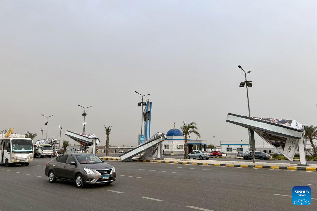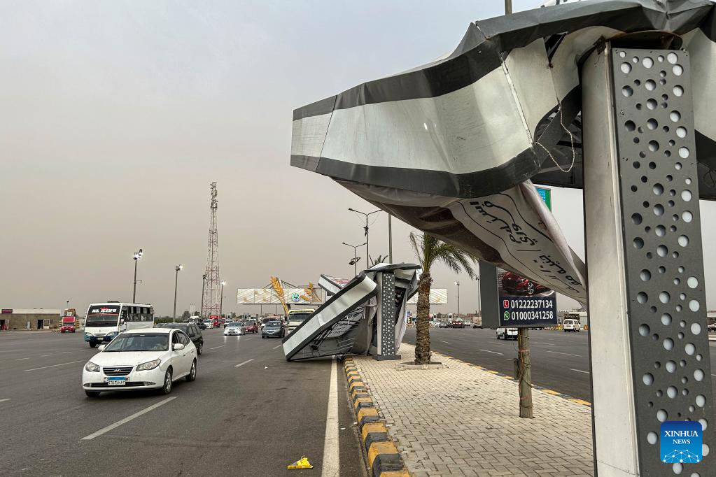 Photo taken on June 1, 2023 shows billboards collapsed in a sandstorm in Cairo, Egypt. One person was killed and five others were wounded in the Egyptian capital of Cairo as a massive sandstorm hit several parts of Egypt on Thursday. (Xinhua/Ahmed Gomaa)