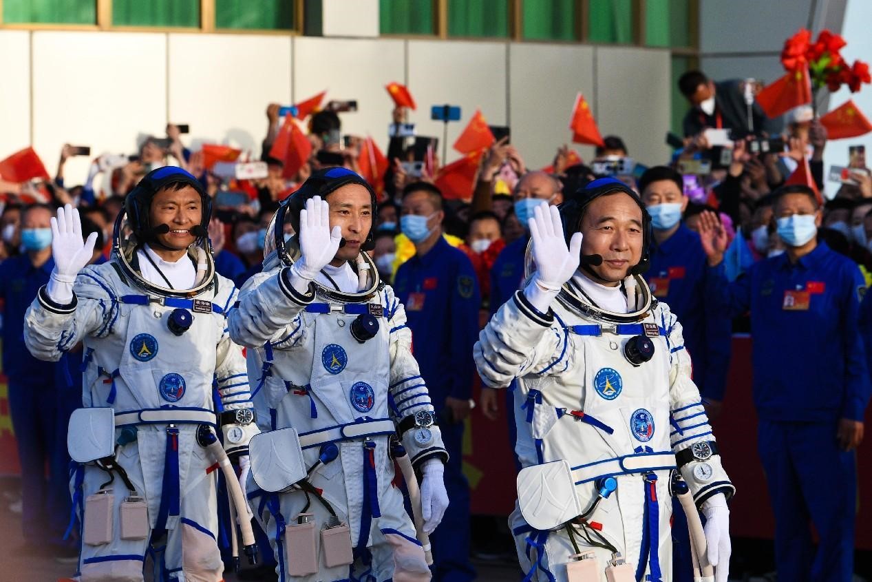 A see-off ceremony for three Chinese astronauts of the Shenzhou-16 crewed space mission is held at the Jiuquan Satellite Launch Center in northwest China, May 30, 2023. (People's Daily Online/Wang Xiaobo)