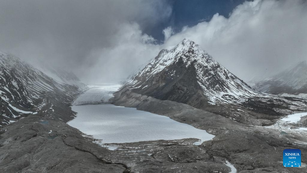 This photo taken on May 31, 2023 shows a view of the Gyaimaryangzhong Glacier in southwest China's Tibet Autonomous Region. The Gyaimaryangzhong Glacier is the source of the Yarlung Zangbo River, China's longest plateau river. (Xinhua/Fei Maohua)