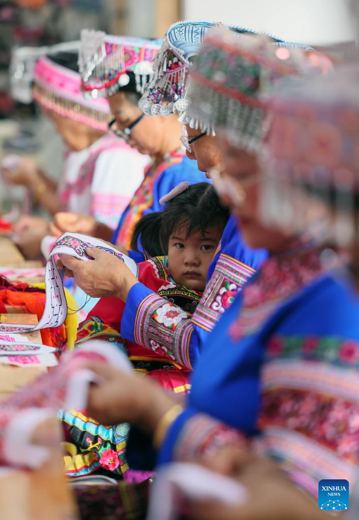 Embroidery industry provides jobs for local women of Miao ethnic group in Yunnan county