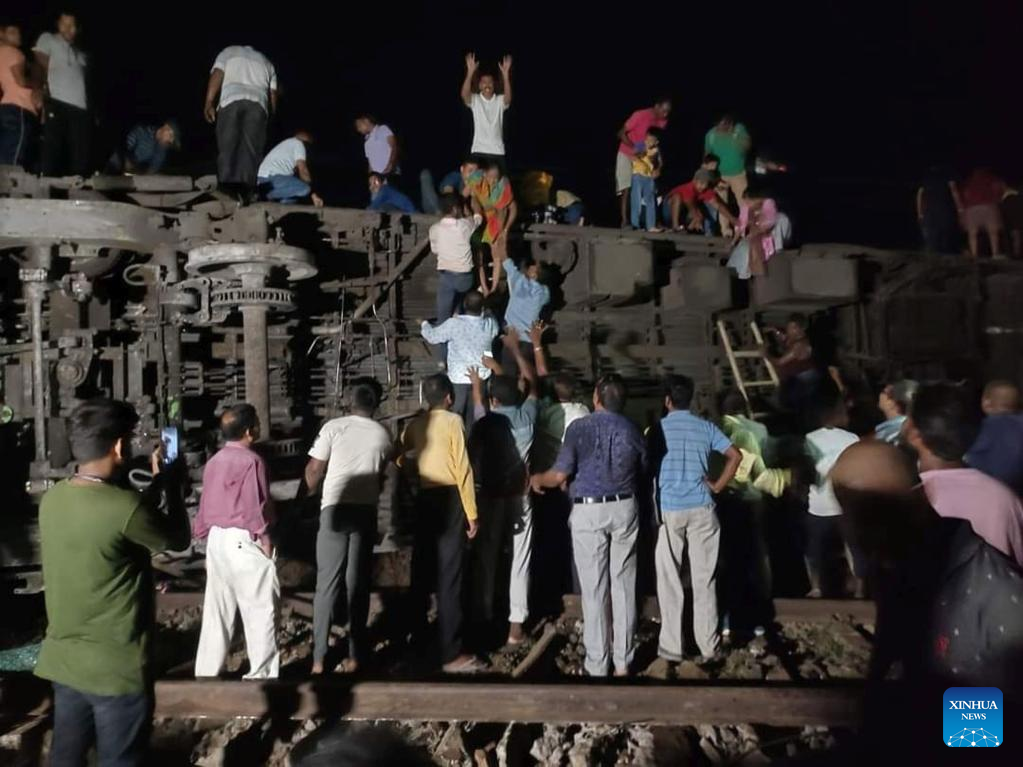 NEW DELHI, June 3 (Xinhua) -- More than 200 people were killed and 900 others injured in a major accident Friday evening involving three trains in the eastern Indian state of Odisha, officials said on Saturday.