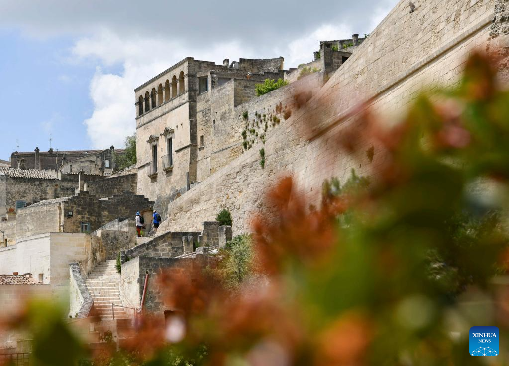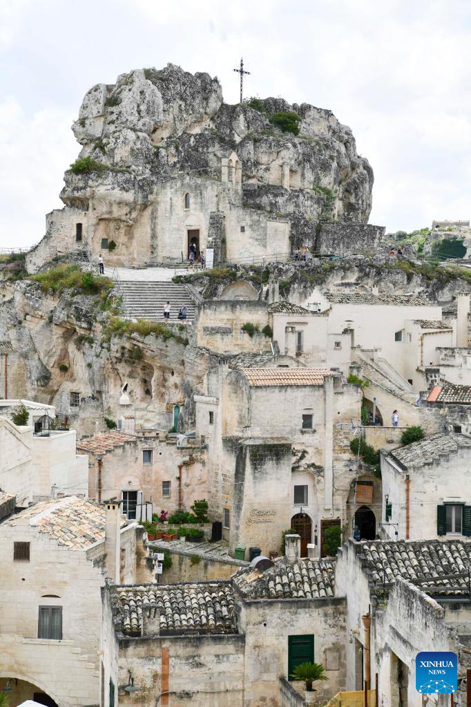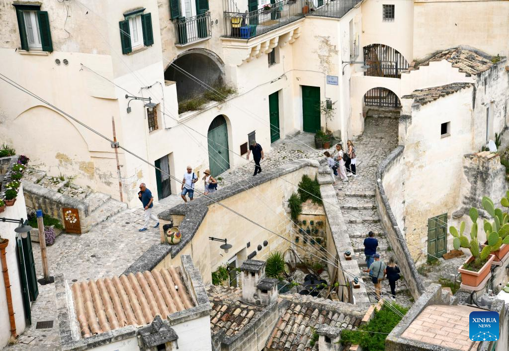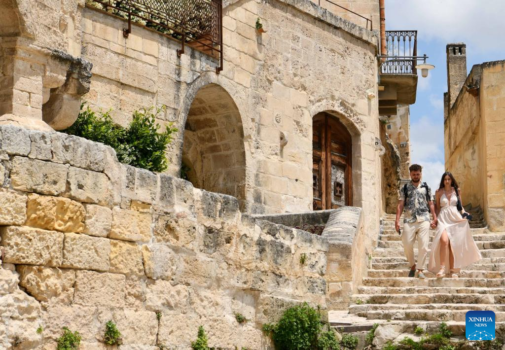 Tourists visit the Sassi of Matera in the southern region of Basilicata, Italy, June 1, 2023. Matera's Sassi and Park of the Rupestrian Churches were inscribed on the UNESCO World Heritage List in 1993. (Xinhua/Jin Mamengni)