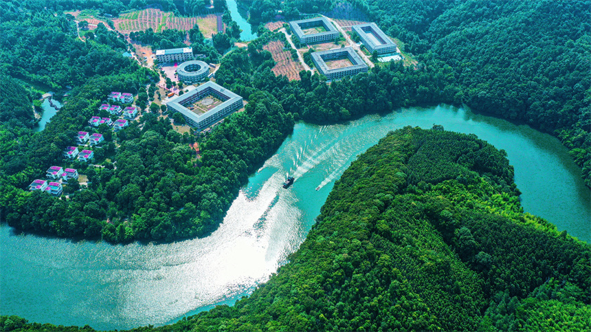 An aerial view of Jiuqu river in Tianjiu township, Ganzhou city, east China's Jiangxi Province. (Photo/Chen Anjun)?