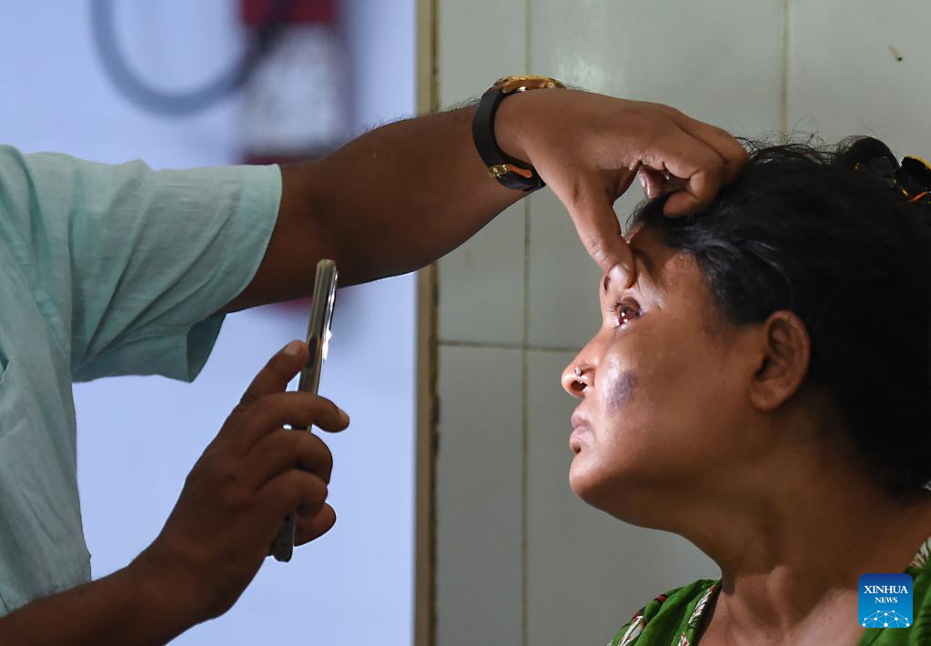 An injured passenger of a train collision receives medical examination at a hospital in Balasore district of the eastern Indian state of Odisha, June 4, 2023. (Xinhua/Javed Dar)