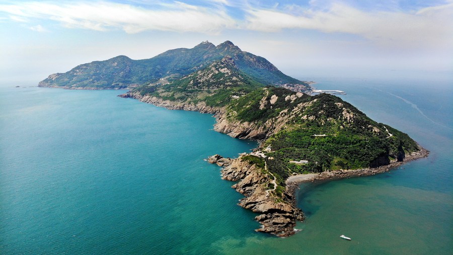 This aerial photo taken on June 5, 2023 shows the Lingshan Island in Qingdao, east China's Shandong Province. (Xinhua/Li Ziheng)