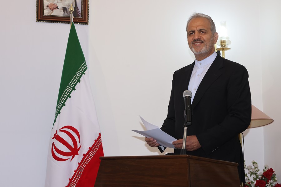 Iranian Deputy Foreign Minister Alireza Bigdeli addresses the ceremony to reopen the Iranian embassy in Riyadh, Saudi Arabia, on June 6, 2023. (Xinhua/Wang Haizhou)
