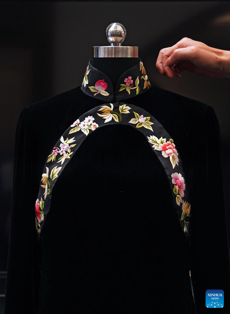 This photo taken on May 30, 2023 shows a cheongsam at the Longfeng Cheongsam store in east China's Shanghai. (Xinhua/Wang Xiang)