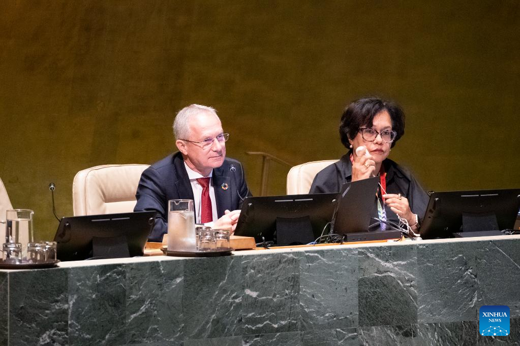 UN General Assembly President Csaba Korosi (L) presides over a meeting to elect non-permanent members of the Security Council at the UN headquarters in New York, on June 6, 2023. Algeria, Guyana, the Republic of Korea, Sierra Leone, and Slovenia were elected non-permanent members of the UN Security Council on Tuesday for a two-year term. (Evan Schneider/UN Photo/Handout via Xinhua)