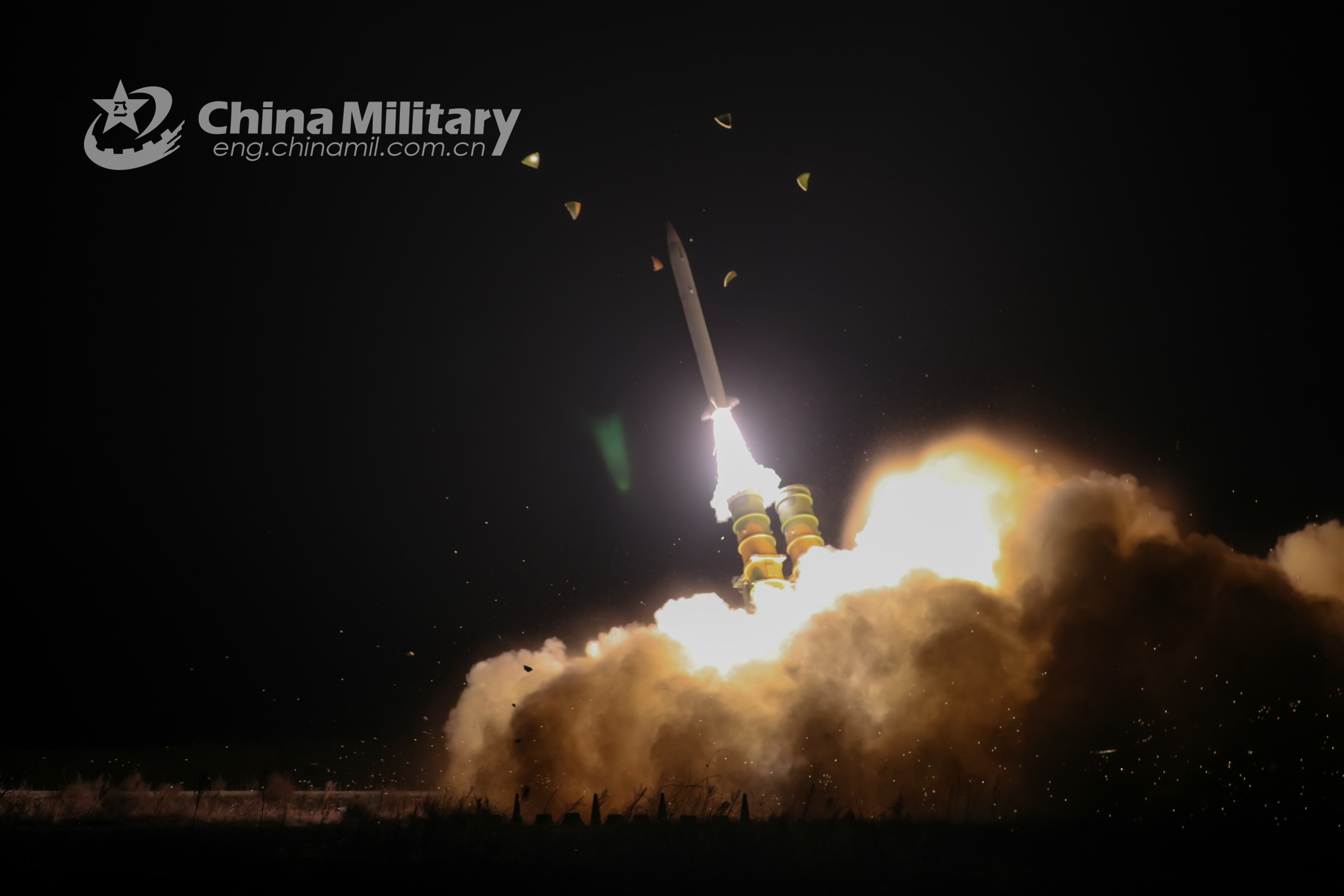 A surface-to-air missile system attached to a brigade of the air force under the PLA Southern Theater Command fires missile at mock aerial target during a recent realistic training exercise. (eng.chinamil.com.cn/Photo by Xiang Kun)