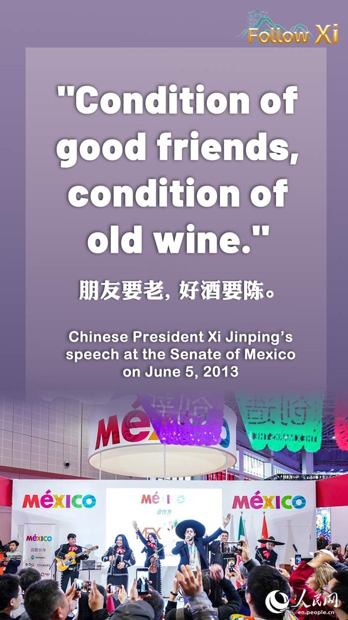 There is a proverb in Latin America, "Condition of good friends, condition of old wine." The friendship between China and Mexico, which has grown from one generation to another, is like a bottle of aged Tequila, brimming with ever fresh fragrance with the passage of time.