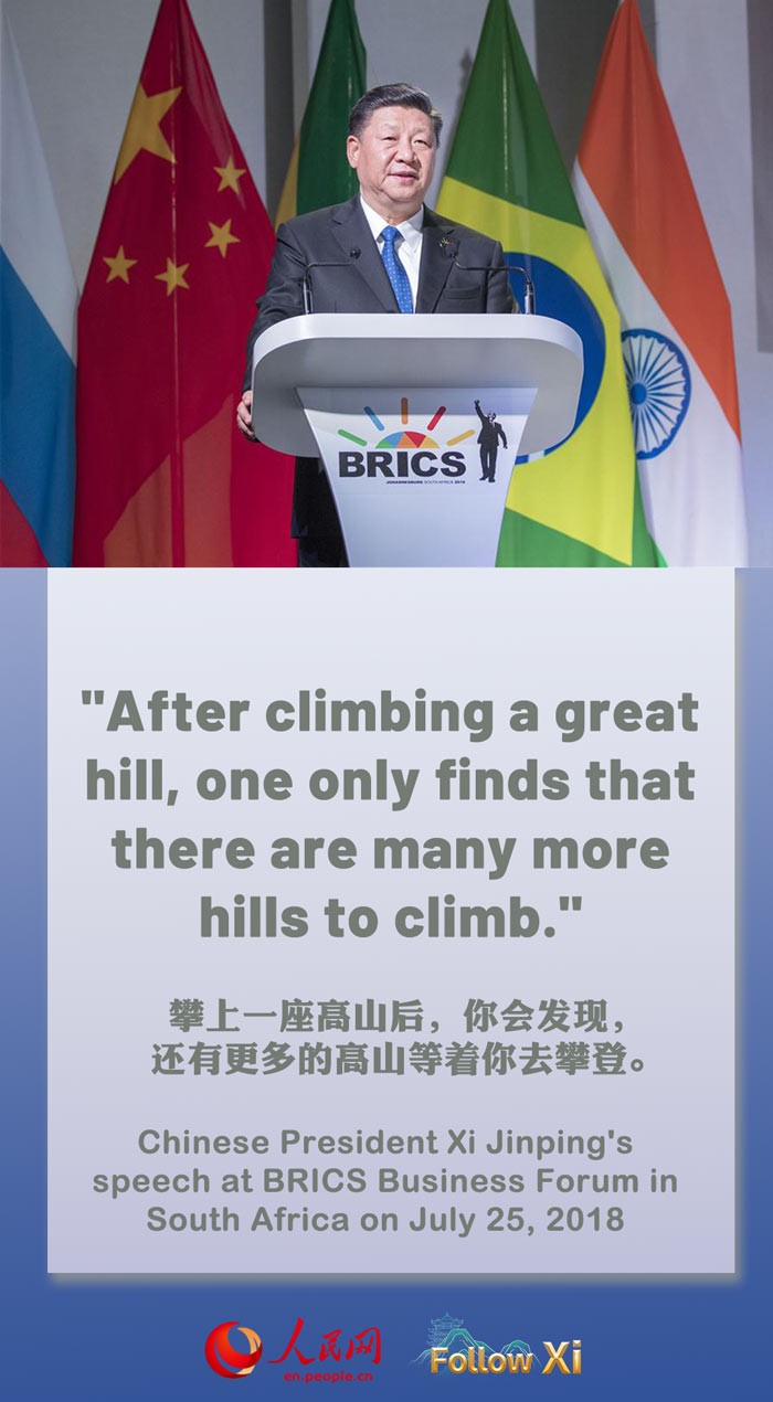 —— Chinese president Xi Jinping's speech at BRICS Business Forum in South Africa on July 25, 2018