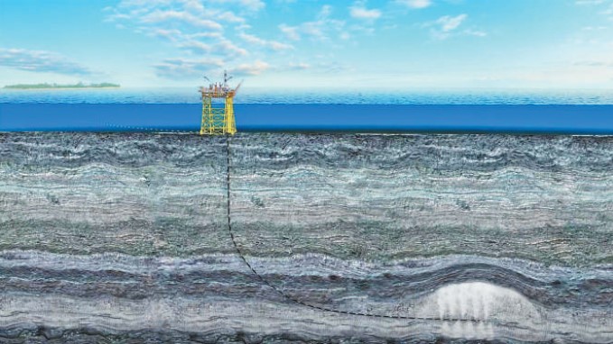 Photo shows a schematic of China's offshore carbon storage project. (Photo provided by the China National Offshore Oil Corporation)