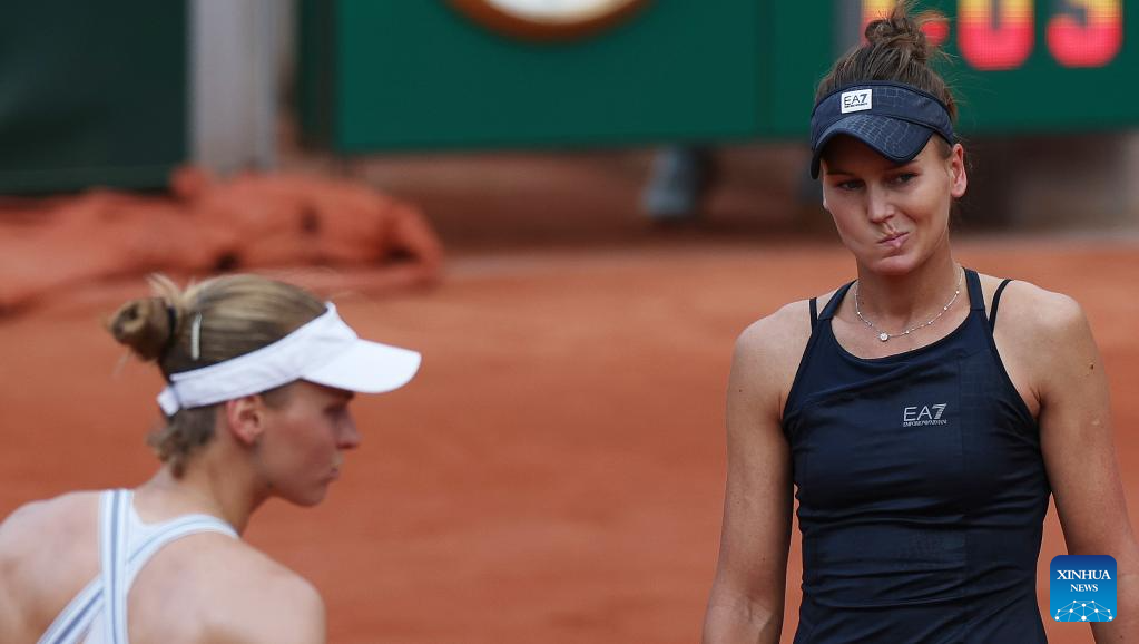 Wang Xinyu (R) of China/Hsieh Su-Wei of Chinese Taipei compete during the women's doubles quarterfinals between Wang Xinyu of China/Hsieh Su-Wei of Chinese Taipei and Veronika Kudermetova/Liudmila Samsonova of Russia at the French Open tennis tournament at Roland Garros in Paris, France, June 7, 2023. (Xinhua/Gao Jing)