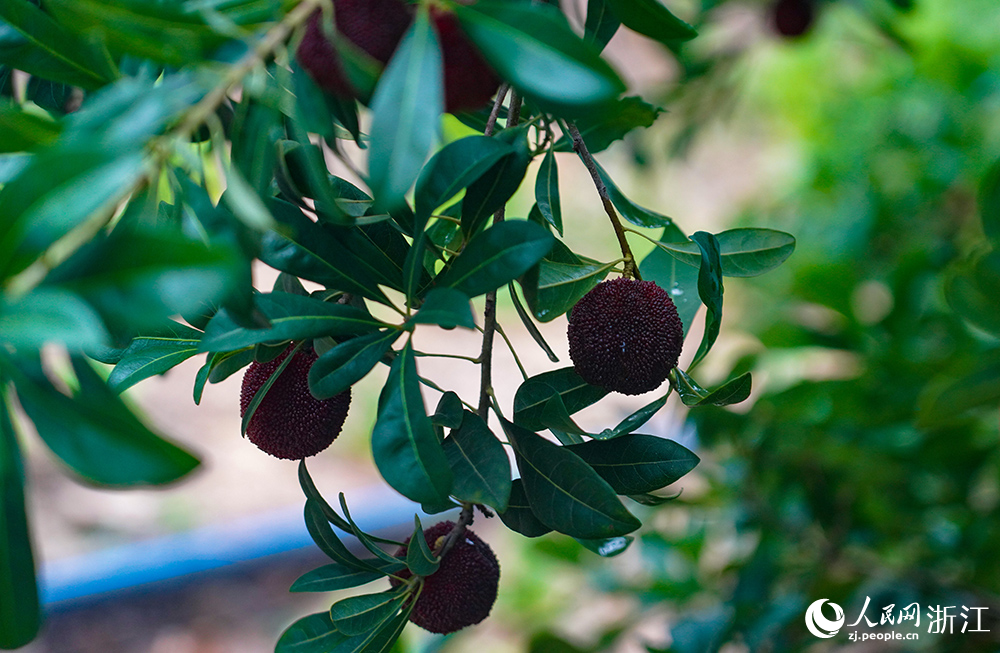 Photo taken on June 8 shows ripe Chinese bayberries in an orchard in Xianju county, Taizhou city, east China's Zhejiang Province. (People's Daily Online/Zhang Yongtao)