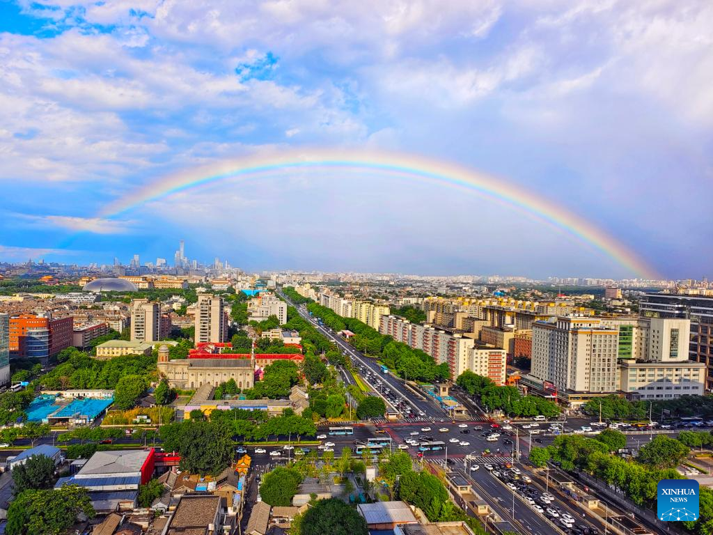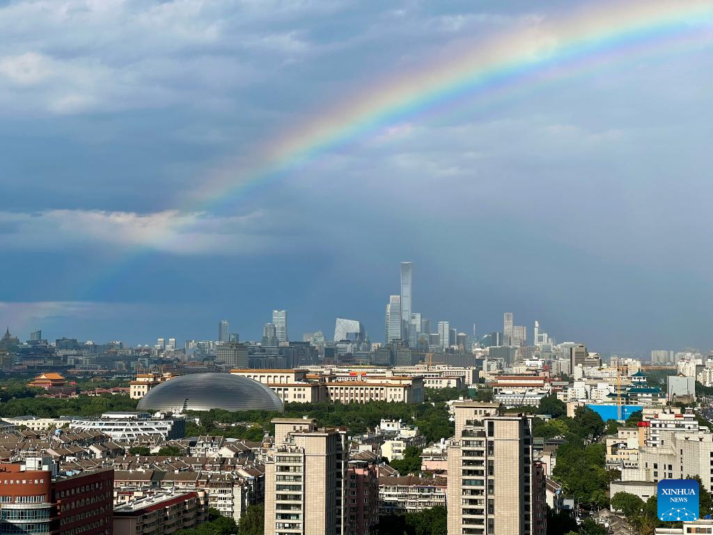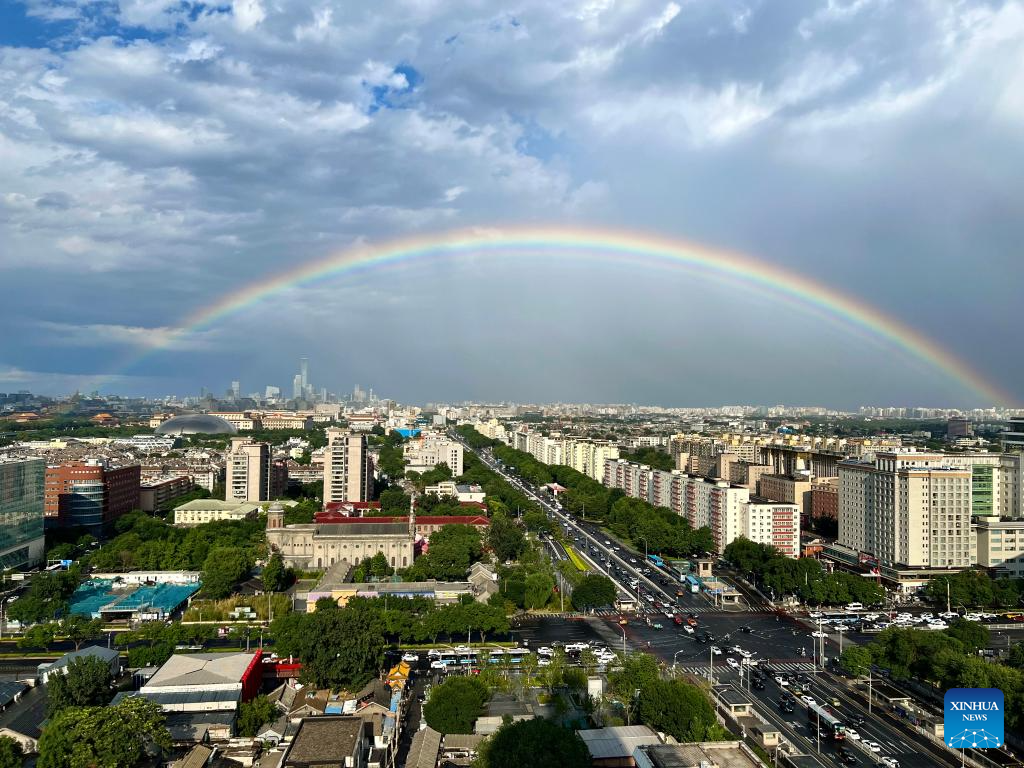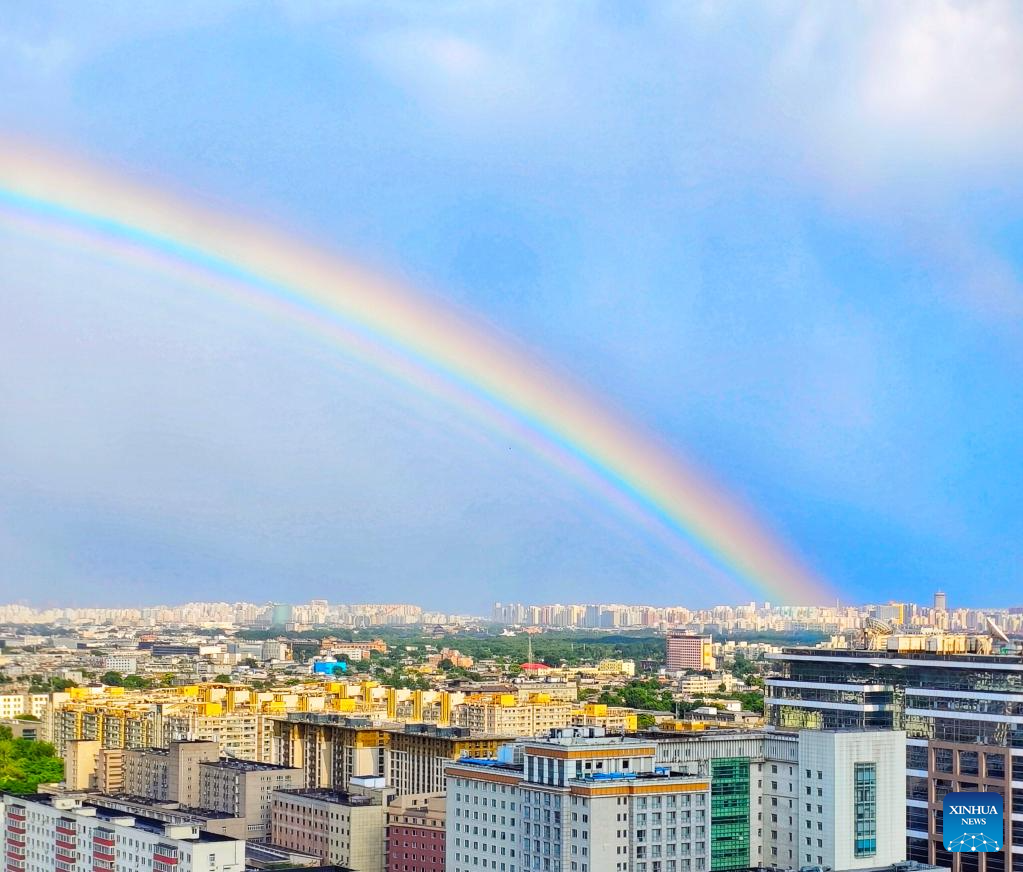This photo taken with a mobile phone shows a rainbow in the sky over Beijing, capital of China, June 11, 2023. (Xinhua/Lu Zhe)