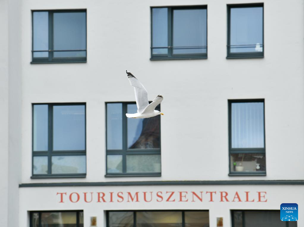 A sea gull flies past the tour center in Stralsund, northeastern Germany, June 1, 2023. (Xinhua/Ren Pengfei)