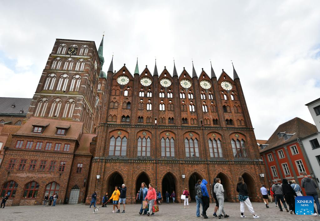 This photo taken on June 1, 2023 shows the town hall of Stralsund, northeastern Germany. (Xinhua/Ren Pengfei)
