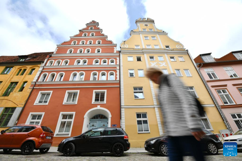 People walk in a street in Stralsund, northeastern Germany, June 1, 2023. (Xinhua/Ren Pengfei)