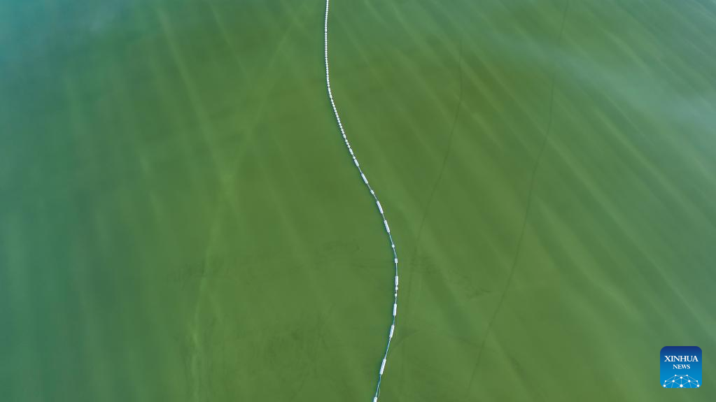 This aerial photo taken on June 9, 2023 shows the scenery of the Qairhan salt lake in Golmud, northwest China's Qinghai Province. The Qairhan salt lake, with a total area of 5,856 square kilometers, has been the largest potash fertilizer producing base in China. (Xinhua/Pan Binbin)