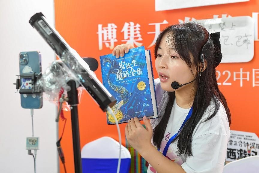 A woman advertises a children's book via livestreaming in Hefei, east China's Anhui province. (People's Daily Online/Yuan Bing)