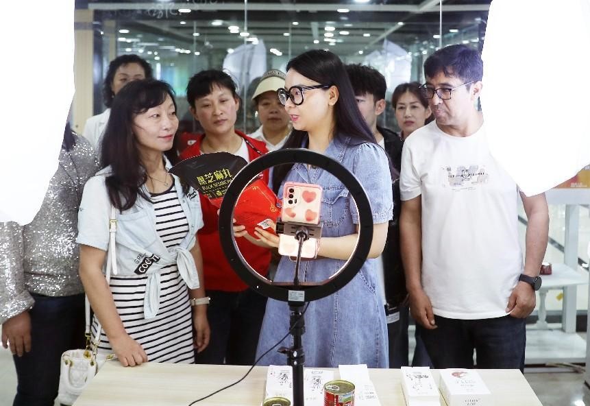 A host shares livestream marketing skills with people during a training class in Urumqi, northwest China's Xinjiang Uygur autonomous region. (People's Daily Online/Zhang Xiuke)