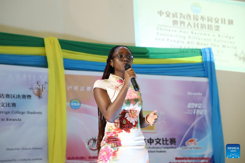 "I am thrilled to have emerged as the winner of the Chinese Bridge competition in the university category. Over the past year, I have dedicated myself to learning the Chinese language, and I am incredibly proud of my achievement," Delice Mbashimiyimana, a quantity surveying senior of the College of Science and Technology at the University of Rwanda, told Xinhua.