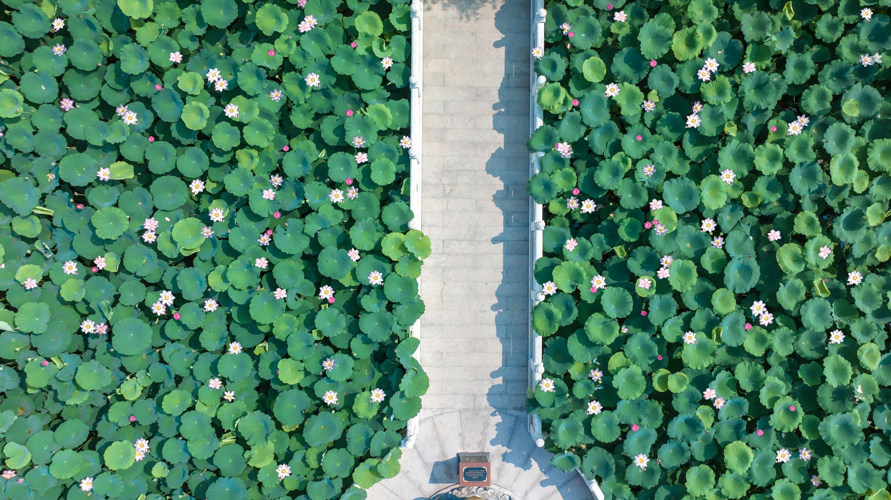 Photo shows blooming lotus flowers at the Baomo Garden in Guangzhou, south China's Guangdong Province. (Photo courtesy of the Baomo Garden)