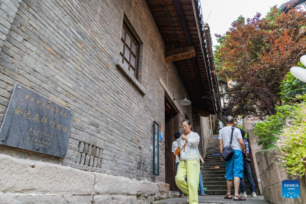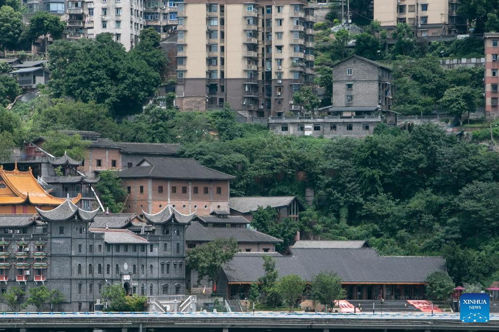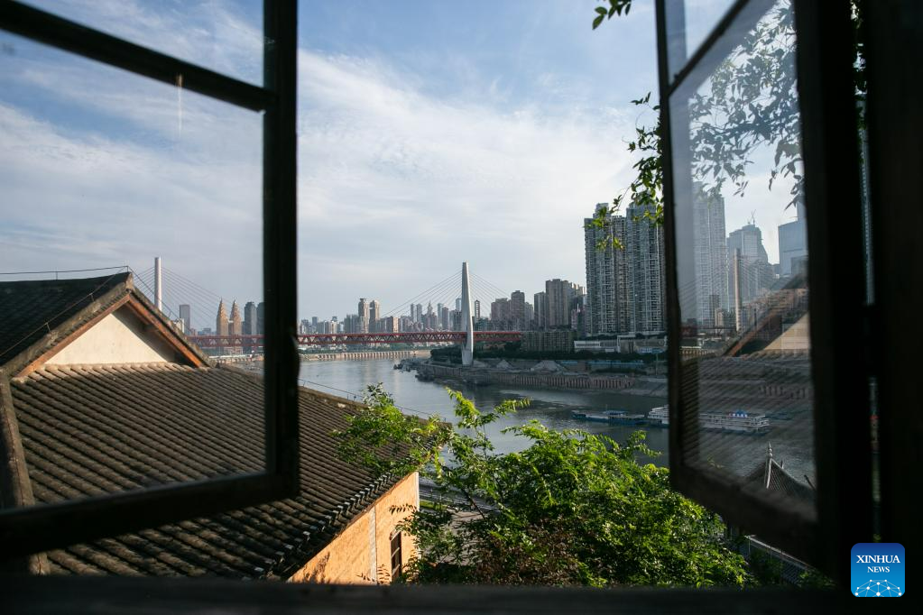 This photo shows the scenery seen from a museum displaying the history of Palace Museum antiques moved there during World War II in southwest China's Chongqing, June 12, 2023. The museum is located in a former foreign firm, where nearly 4,000 cases of antiques were stored during wartime.