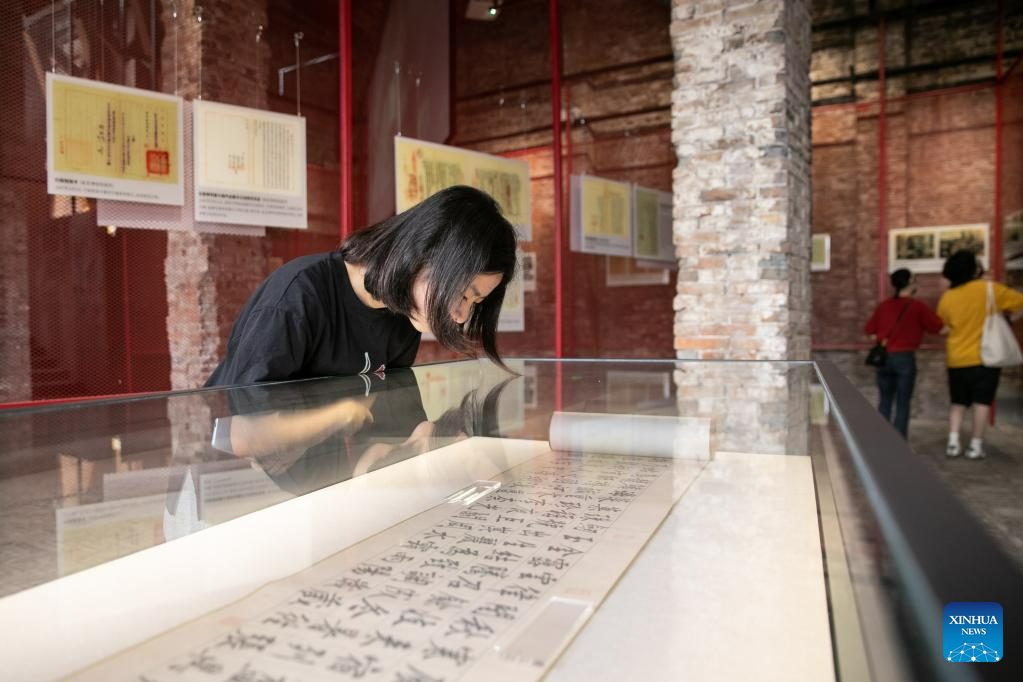Tourists visit an exhibition at a museum displaying the history of Palace Museum antiques moved there during World War II in southwest China's Chongqing, June 9, 2023. The museum is located in a former foreign firm, where nearly 4,000 cases of antiques were stored during wartime.