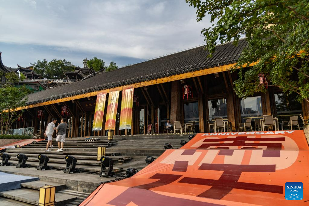 People enjoy a concert in celebration of the second anniversary of the opening of a museum displaying the history of Palace Museum antiques moved there during World War II in southwest China's Chongqing, June 10, 2023. The museum is located in a former foreign firm, where nearly 4,000 cases of antiques were stored during wartime.