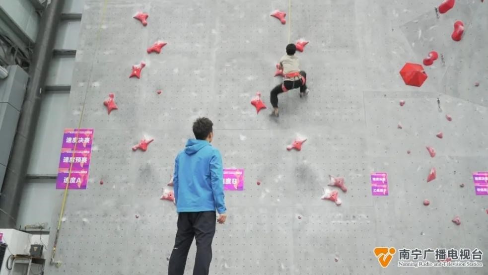 Wei Junhuan, a student in Mashan county, has joined the national youth rock climbing squad for five years. Wei said climbing is like a window from which he can see a broader world, and competing with climbers across the country helps him become a better athlete.