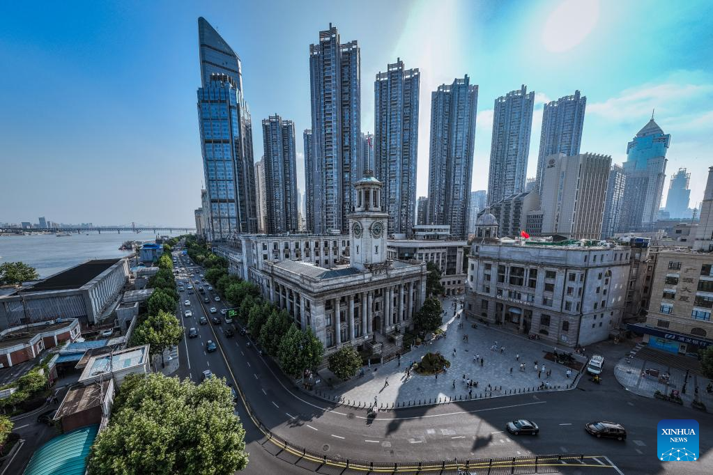This aerial photo taken on June 6, 2023 shows the Hankow Customs House in Wuhan, central China's Hubei Province. Covering an area of 6.02 square kilometers, the Hankou historical area in the heart of Wuhan City's old town, boasts an abundance of historical and cultural heritages.