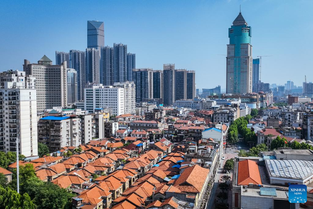 This aerial photo taken on June 6, 2023 shows a corner of Hankou historical area in Wuhan, central China's Hubei Province. Covering an area of 6.02 square kilometers, the Hankou historical area in the heart of Wuhan City's old town, boasts an abundance of historical and cultural heritages.