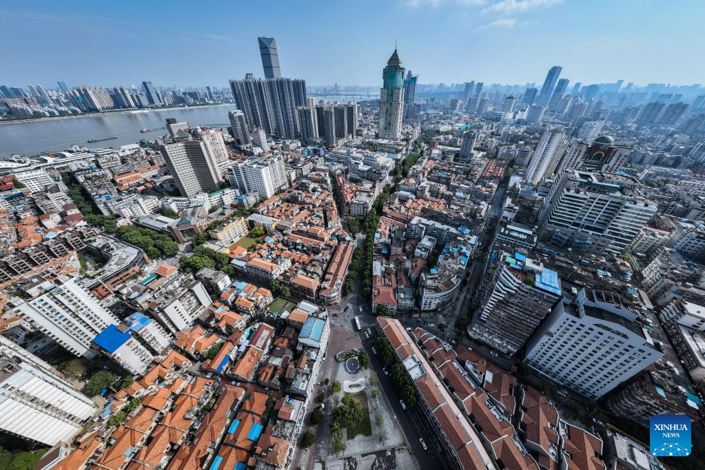 This stitched aerial photo taken on June 6, 2023 shows a view of Hankou historical area in Wuhan, central China's Hubei Province. Covering an area of 6.02 square kilometers, the Hankou historical area in the heart of Wuhan City's old town, boasts an abundance of historical and cultural heritages.