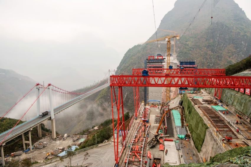 The Wumengshan bridge, located in the Wumeng Mountains, is another important section of the Nayong-Qinglong expressway. Once completed, the bridge will become the world's first long-span steel truss and concrete arch bridge.