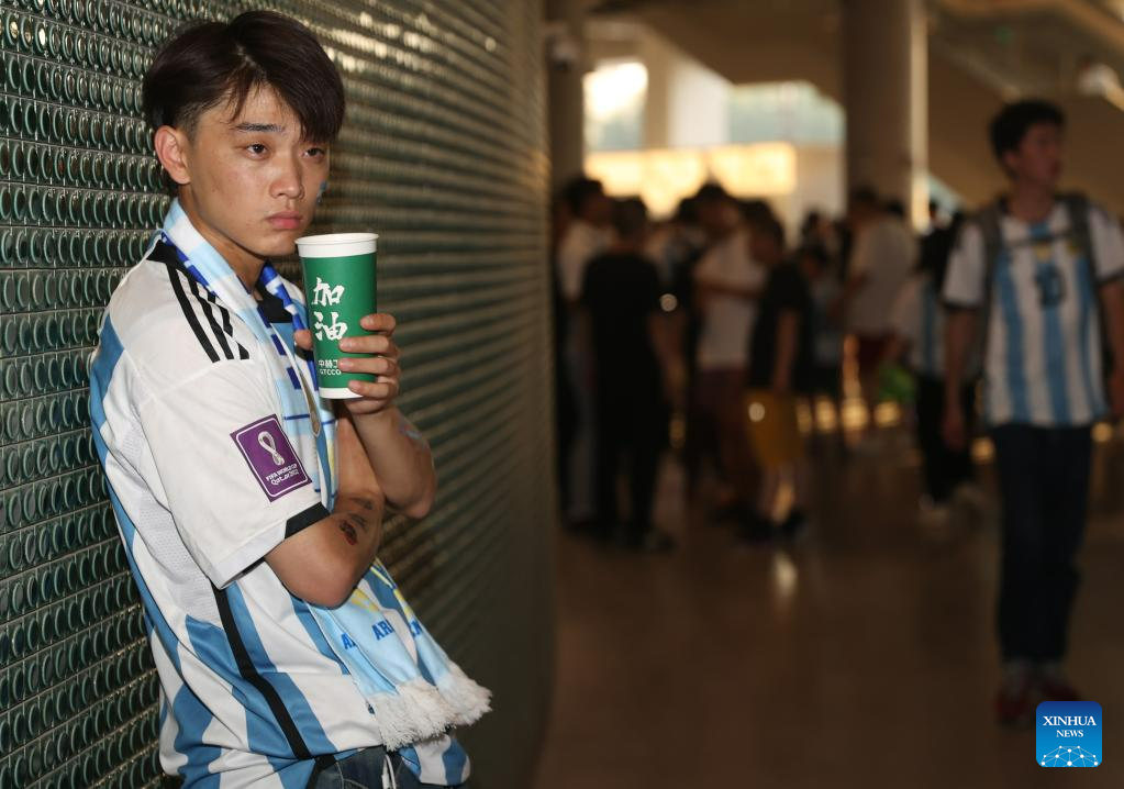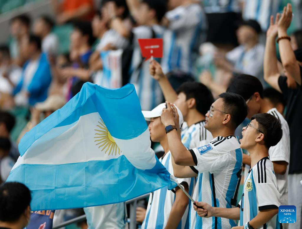 Fans are seen ahead of an international football invitational between Argentina and Australia in Beijing, capital of China, June 15, 2023. (Xinhua/Zhang Chen)