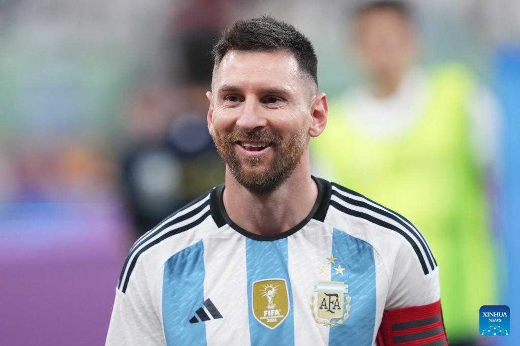 Lionel Messi of Argentina reacts ahead of an international football invitational between Argentina and Australia in Beijing, capital of China, June 15, 2023. (Xinhua/Peng Ziyang)