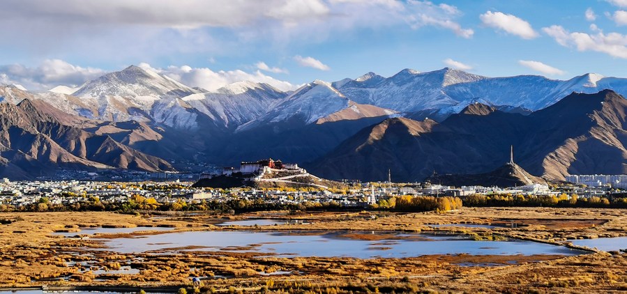 This photo taken with a mobile phone on Oct. 29, 2022 shows the Lhalu wetland in Lhasa, southwest China's Tibet Autonomous Region. (Xinhua/Shen Hongbing)
