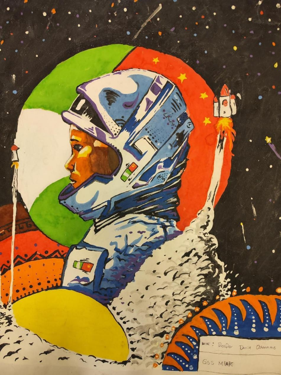 The theme of the competition was mankind's dream of exploring the vast universe. In Dania's painting, a round pattern comprised of the national flags of Nigeria and China is displayed, symbolizing the friendship and solidarity between the two countries.
