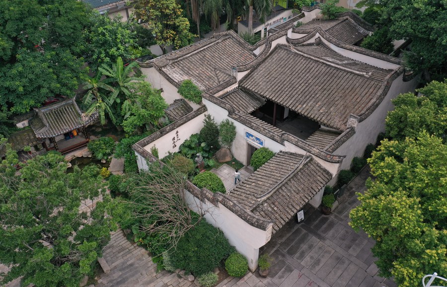 This aerial photo taken on June 14, 2023 shows a view of the former residence of Lin Juemin, a renowned revolutionary hero, in Sanfangqixiang (Three Lanes and Seven Alleys) in Fuzhou, southeast China's Fujian Province. (Xinhua/Lin Shanchuan)