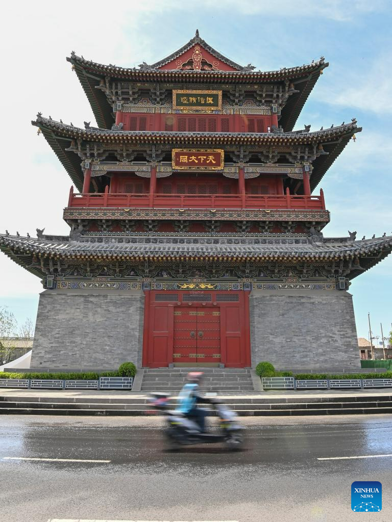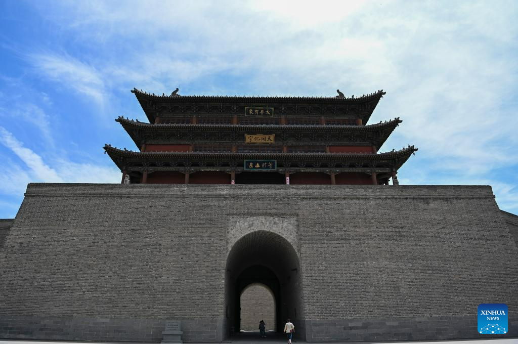 This photo taken on June 8, 2023 shows a view of Datong ancient town in Datong, north China's Shanxi Province. Datong, with a history of over 2,000 years, is one of China's ancient capitals. In recent years, Datong has developed its tourism combining rich cultural heritages and well-known attractions. The historic city is shining with a new vitality. (Xinhua/Yang Chenguang)