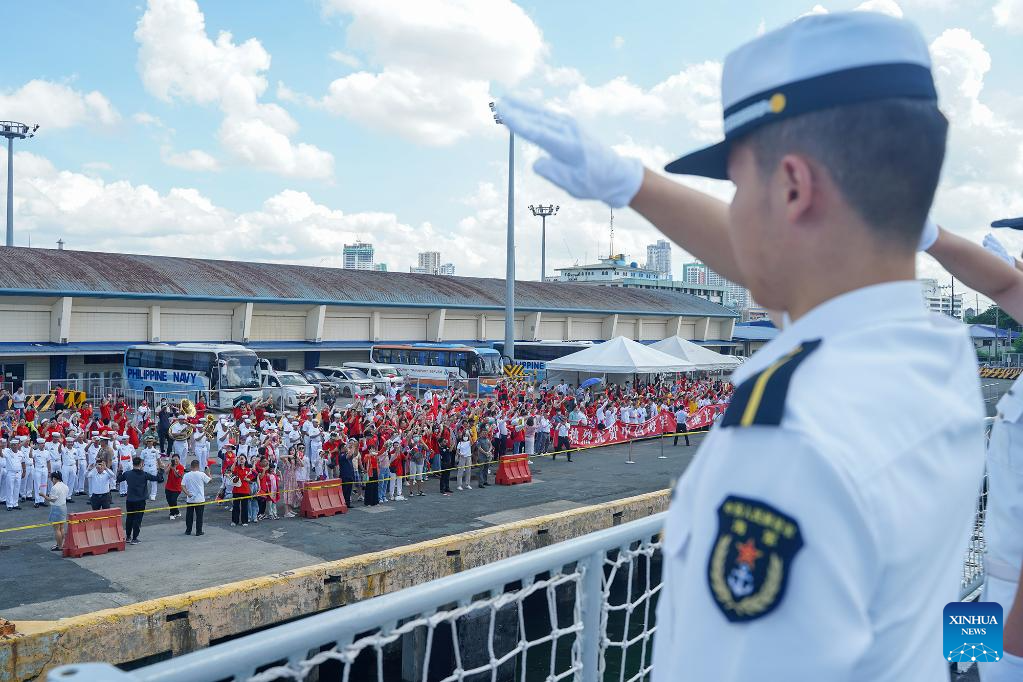 The Philippine side held a grand farewell ceremony at the South Harbor in Manila. More than 300 people, including Chinese Ambassador to the Philippines Huang Xilian, defense attache to the Philippines Li Jianzhong, staff of the Chinese Embassy in the Philippines, representatives of Chinese companies, local Chinese associations and Chinese students, as well as representatives of the Philippine Navy, went to the port to see off the ship.