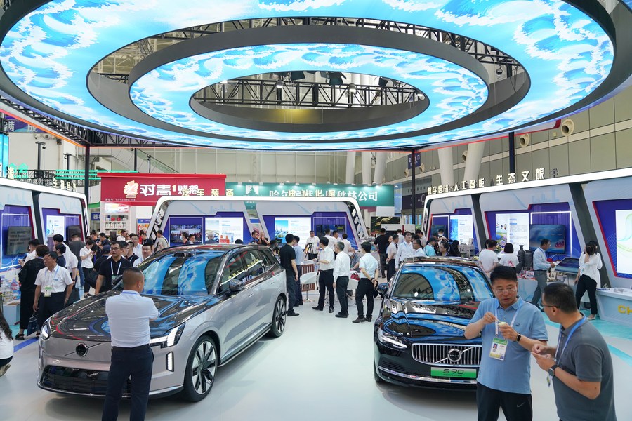 People visit the 32nd Harbin International Economic and Trade Fair in Harbin, capital of northeast China's Heilongjiang Province, June 15, 2023. (Xinhua/Wang Jianwei)