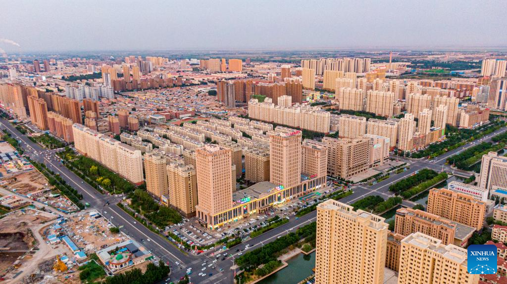 This aerial photo taken on June 19, 2023 shows the city view of Bayannur, north China's Inner Mongolia Autonomous Region. (Xinhua/Peng Yuan)