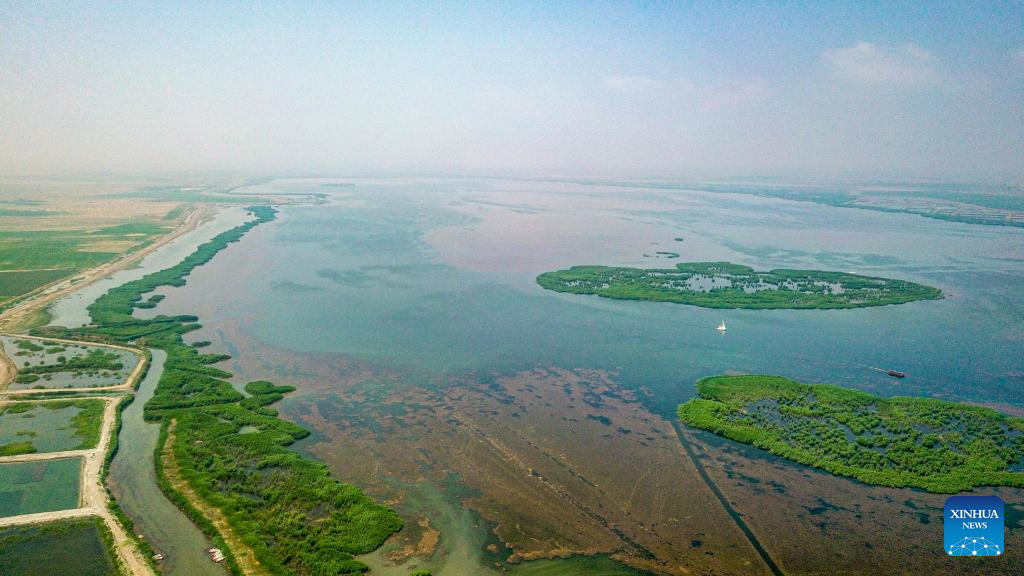 This aerial photo taken on June 19, 2023 shows the Wuliangsu Lake in Bayannur, north China's Inner Mongolia Autonomous Region. (Xinhua/Peng Yuan)