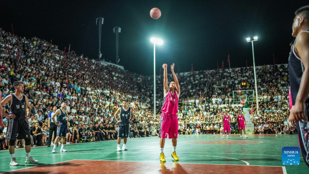 At the unveiling ceremony of "CunBA," the village basketball team of Qiandongnan Miao and Dong Autonomous Prefecture had a friendly match with their counterparts from Linxia Hui Autonomous Prefecture, situated in northwest China's Gansu Province. This event drew thousands of spectators to the competition site.